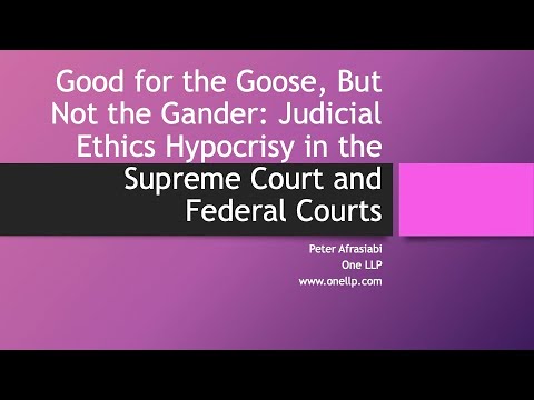 In this ethics program, we explore the issue of judges judging judges. Experienced intellectual property litigator Peter Afrasiabi takes you on a fun, interesting journey through the fascinating history of federal judicial ethics rules and the cases that have led to judges judging judges in often light and inconsistent ways. You will explore the inconsistent use of ethics-based disqualification rules by Supreme Court justices judging themselves versus how they judge other judges in similar situations. And you will explore remarkable cases of judges handcuffing kids from the public gallery in court to judges going on family vacations with prosecutors right after a trial they all were in to even the case of three judges getting drunk and then in a public brawl with someone. And we look at who judges them, what punishments are meted out, and does the system of judges judging judges really comport with how the rest of us and our clients are judged and punished for similar behavior?