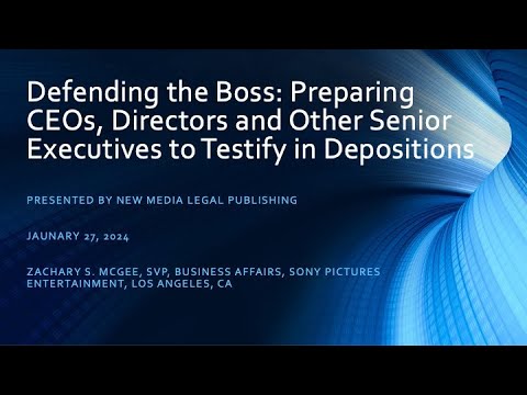 - Defending the Boss: Preparing CEOs, Directors and Other Senior Executives to Testify in Depositions
