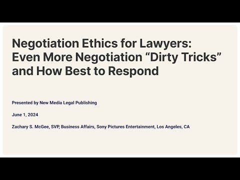 - Negotiation Ethics for Lawyers: Dealing with "Next Level" Negotiation Tricks and Bad Faith Tactics (2024)